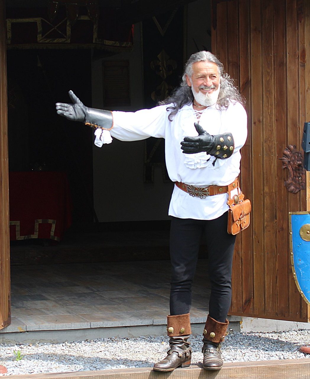 Ora 19:00 – Întâmpinarea Cavalerului Romulus și intrarea în Sala Cavalerilor, înveșmântare în straie medievale.